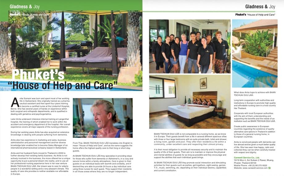 In the issue February 2013 you can find an report about Baan Tschuai duu lää - House of help and care, for elderly and disease People. Especially thanks to Matthew Pond for the interviews and the Story.